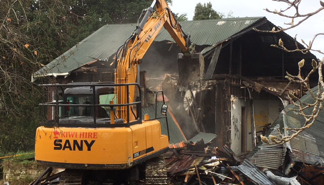 The derelict Four Kauri Medical Centre – destroyed by fire more than three years ago – has finally bitten the dust. Auckland Council has been on the developer’s back now for months and today (see pictures below) the demolition crew broke the back of the job. The shell of the building was smashed to the…